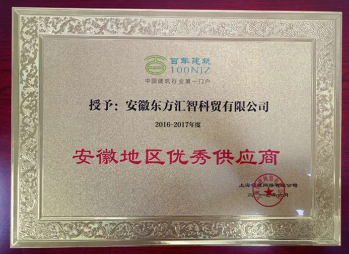 安徽東方匯智科貿有限公司榮獲安徽地區優秀供應商稱號