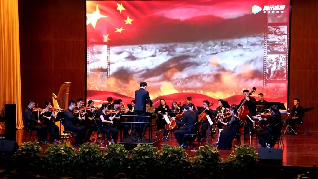 這個夜晚,激越、奮進的樂音,映襯飄揚的五星紅旗,將全場帶入了喜慶祥和的"國慶時間"。