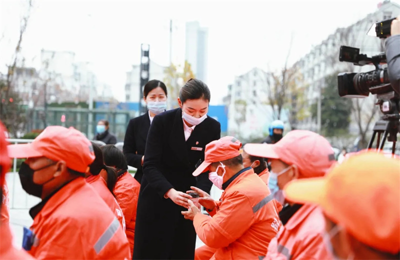 熱氣騰騰的暖心姜茶,為寒冷冬日里的“溫暖太陽(yáng)”,郁金香VIP服務(wù)人員,為每一位“城市建設(shè)者”送上一份冬日的溫暖。 一杯杯溫暖的姜茶,一句句貼心的問(wèn)候,溫暖了每一個(gè)“城市建設(shè)者”的心田,感謝他們?yōu)槌鞘兴龀龅膫ゴ筘暙I(xiàn)。