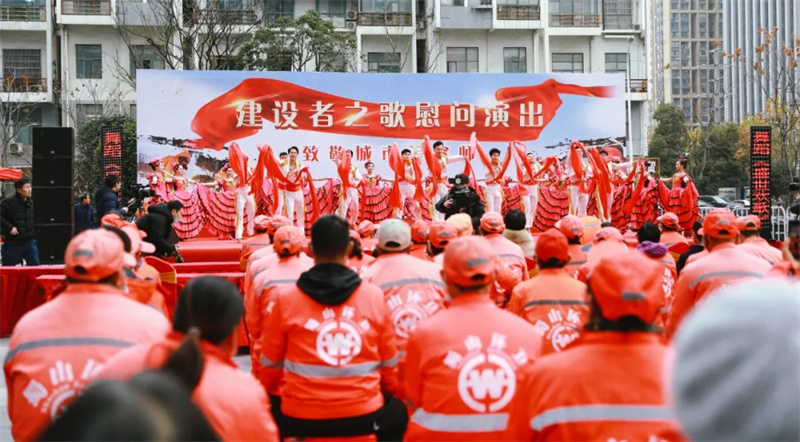 為進(jìn)一步貫徹落實(shí)總書(shū)記七一講話精神,慰問(wèn)一線建設(shè)者,致敬城市美容師。12月15日,由合肥市委宣傳部主辦,合肥演藝集團(tuán)承辦的"建設(shè)者之歌"大型公益演出活動(dòng),在合肥地標(biāo)性建筑——華地金融中心廣場(chǎng)盛大開(kāi)幕。