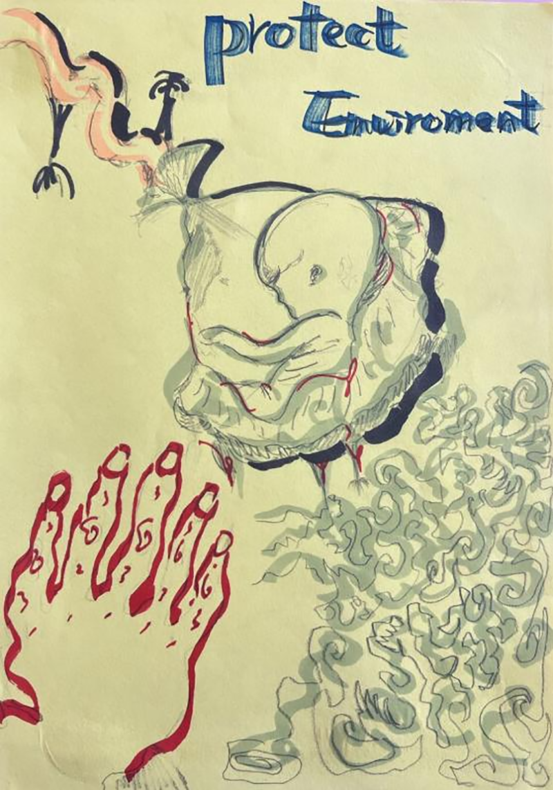 MYP的學生作為05后的新少年群體,已經對世界、對社會開始形成了自己的觀點。用藝術的手法表達人文觀點,并不是一定要規定受眾去做什么事情或不做什么事,而只是作為一種單純的道德疏導工具,進行一種大方向的宏觀勸導。