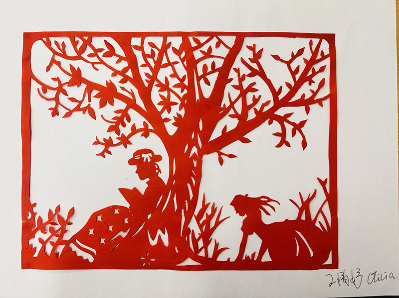 在進行剪紙教學時,教師會設計不同的特定的場景主題,使學生根據(jù)場景,對剪紙進行設計與制作,一來鍛煉學生的動手能力,傳承剪紙藝術;二來鍛煉學生的思維能力及解決實際問題的能力;三來學生根據(jù)相應主題剪紙創(chuàng)作,通過不同圖案體現(xiàn)不同寓意,讓視覺語言的運用能力得到有效鍛煉。