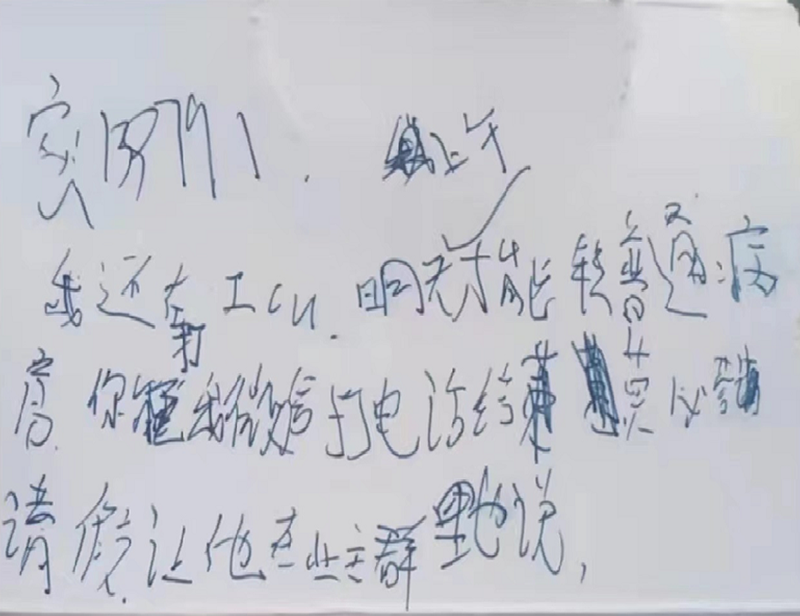 2022年3月25日臨近下班,李娜腹部突發(fā)疼痛。卻因業(yè)主交代的事情沒有完成,不愿就醫(yī),最后疼痛難忍,不得不住進ICU病房。她醒來后第一件事是找紙筆用微弱的氣力寫下了最樸實的文字,讓同事告知業(yè)主她生病的消息。因為她擔(dān)心業(yè)主生病期間,無法及時解決業(yè)主問題。與優(yōu)秀者同行,與奮斗者共進,致敬在平凡崗位認真工作,努力付出的李娜。