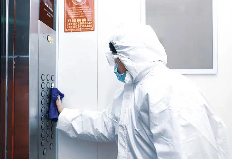 當(dāng)白天的喧囂褪去,夜幕降臨時,他們穿著防護服的身影總是隨處可見,對寫字樓、園區(qū)全部棟樓的公共區(qū)域,進行反復(fù)的消殺并記錄。或許,大白的口罩和防護服遮擋了他們的容顏,但是他們?yōu)闃I(yè)主的心卻在此刻熠熠生輝。