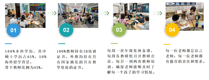 小學課程與教學活動圍繞興趣培養、學習技能及思維方式進行編排;各學科中外教師共同備課,幫助學生建立廣泛的知識關聯;設置多學科融合探究,提升學科素養;分層教學模式及項目式合作學習,針對性提高學生的學術水平;鼓勵學生參與實踐活動,提高學生獨立思考與合作創新能力。