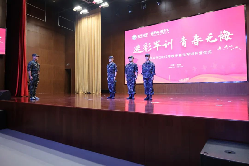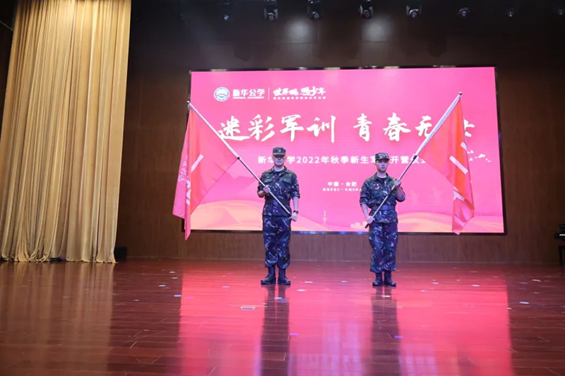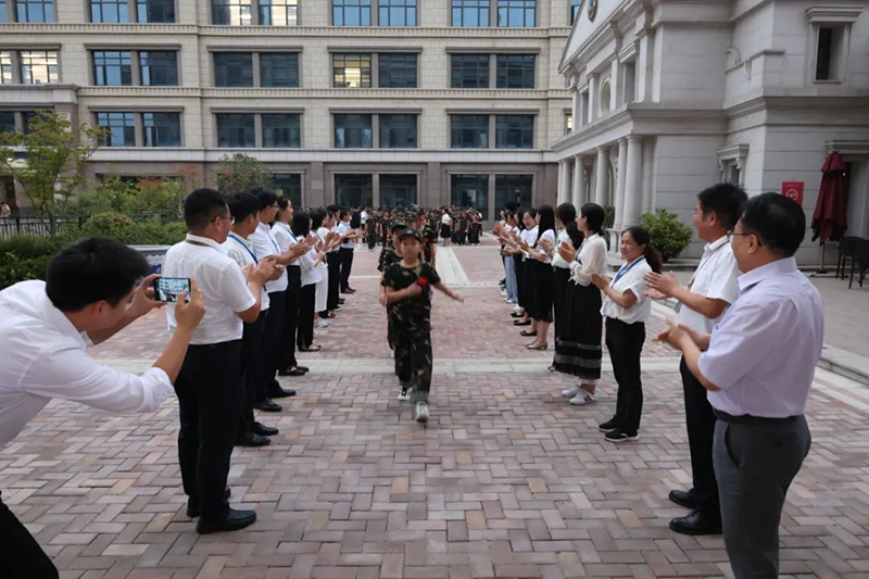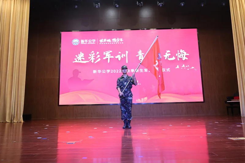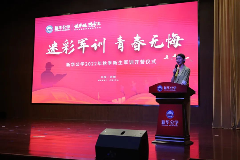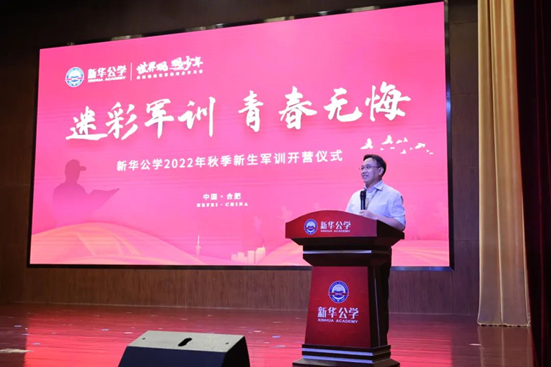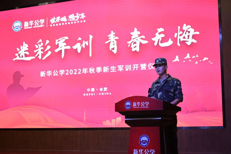 隨后新華公學總校長秦新春給同學們帶來了殷切的期望和囑托。他表示,軍訓是邁入人生新階段的第一課。因此,通過軍訓的磨練后,他希望同學們能夠在生活上自立、學習上自主、健身上自覺、行為上自律、精神上自強,樹立良好的學習和生活觀。