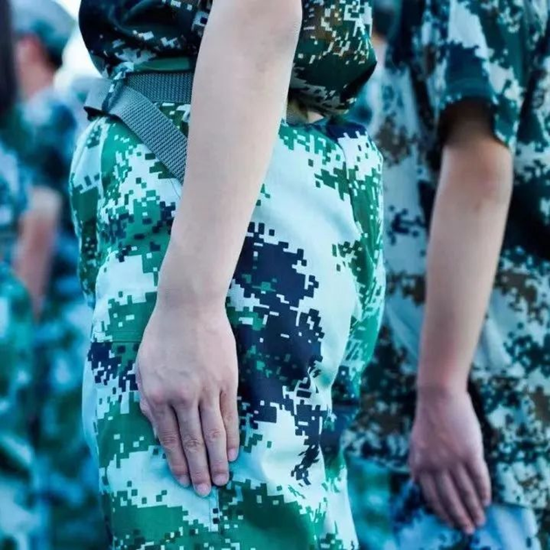 學子們身著迷彩服