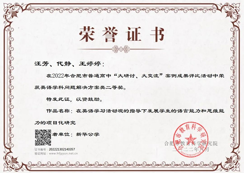 除了學(xué)校內(nèi)部的表彰以外,新華公學(xué)多位教師榮獲合肥市獎(jiǎng)項(xiàng),這更是對(duì)我校教師教學(xué)水平及師德師風(fēng)的肯定與贊揚(yáng)。
